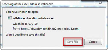 adfdi-excel-addin-installer.exe pop-up appears.